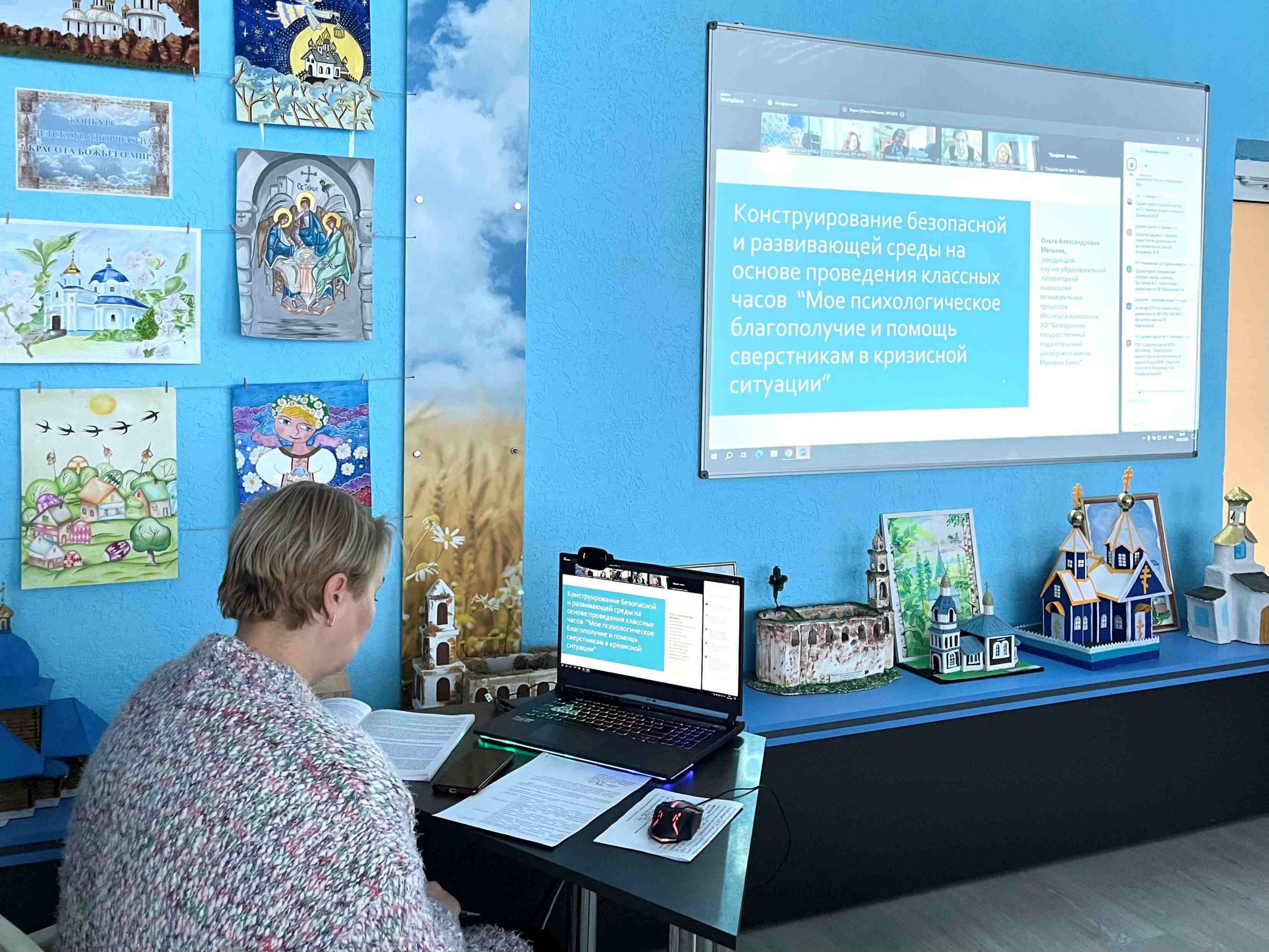 Мельнік В.А., загадчык навукова-адукацыйнай лабараторыі псіхалогіі пазнавальных працэсаў Інстытута псіхалогіі ўстановы адукацыі «Беларускі дзяржаўны педагагічны універсітэт імя Максіма Танка», прысвяціла свой даклад праблематыцы канструявання бяспечнага і развіццёвага асяроддзя на аснове правядзення класных гадзін «Мой псіхалагічны дабрабыт», падзялілася метадычнымі напрацоўкамі па пытаннях распрацоўкі заданняў для навучэнцаў.